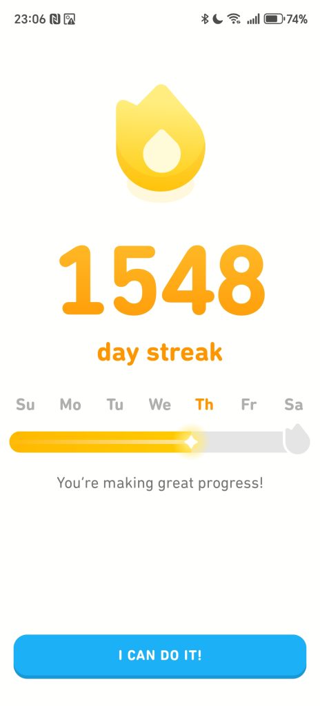 今日で私は日本語を1233日間練習しました